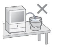 「排水バケツは下図のように置かないでください。