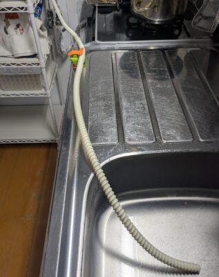一つは、ホースをシンクの中に入れて、そのまま排水する方法。