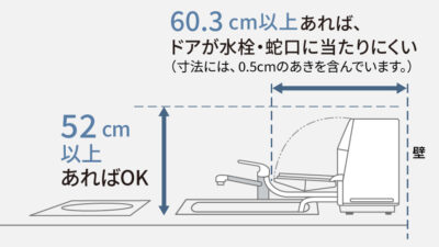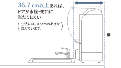 本体の大きさ、扉を開けた時の奥行や、動線の範囲など、実際に使う場面をシミュレーションしながら、機種を決める必要があります。