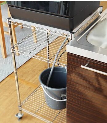 食洗機を載せるラックは、丈夫で安定性のあるスチール製(キャスター付き)をオススメします。